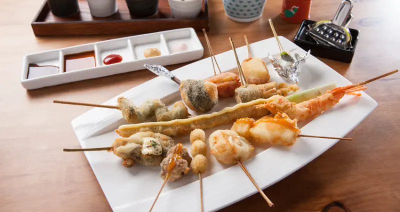 本店最早以日本客為主,搬家後的空間從移植關西老店氛圍調整成工業風,以期吸引更多顧客體驗。口味獨特的元祖手羽先唐揚是招牌經典,從雞翅尺寸、重量、醬料調味與油炸方式,至今仍依照日本老社長傳下的手法製作;而所有串揚也維持每日手作,保留料理原始風味與口感,但加入日式居酒屋元素,酒品選項大幅增加,再應用台灣食材設計調整燒烤菜色及鐵板料理,讓客人有更多元的選擇。