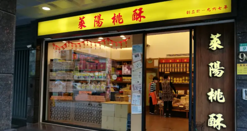 取名來自山東省萊陽縣,自祖居中國開始,便在萊陽城從事南北貨生意及店舖,當時的桃酥只是店裡的一項小點心,而後創始人于霞飛抵台,就開始靠著這份點心營生,並選在羅斯福路上展店,在這不算大的空間中,滿櫃充滿獨特魅力的傳統小點,不僅台灣人喜歡,連外國旅客都聞名而來購買。