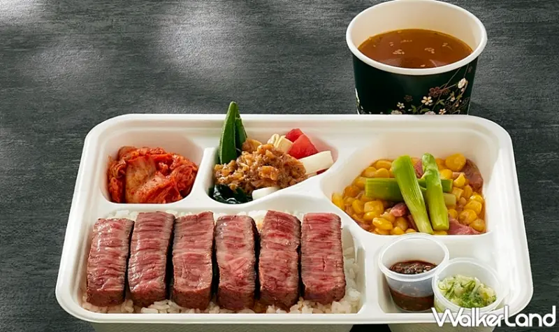 奢華級「日本A5和牛上等牛排便當」,細緻肉質佈滿雪花般油花,由職人現烤至5分熟,呈現柔嫩多汁的粉紅色澤,令人不禁食指大動,每日限量供應。![]()