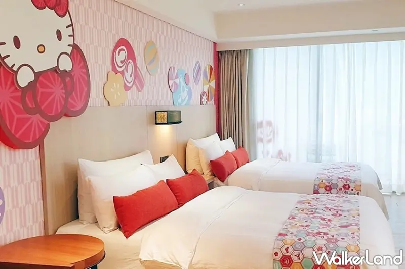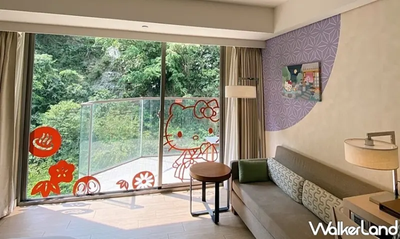 換上浴衣的Kitty搭配淡雅的日式紋樣背景,繽紛的花紋色塊點綴,成熟又不失活潑,客房內彩繪掛畫及專屬設計的特製抱枕(非賣品),亮眼吸睛,入住主題房的賓客還能享有酒店專屬的Hello Kitty期間限定紀念品。![]()
