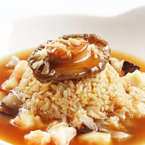 還有「花椒糯米樟茶鴨」原是四川宴席名菜,主廚保留其精隨並稍加改良,將花椒粒翻炒後逼出香氣,香而不辣,與糯米、冬菇丁、筍丁一起入鍋蒸透,帶皮鴨肉薄片結合香氣四溢的熟糯米,下鍋炸至金黃酥脆,入口皮酥肉嫩,鮮美彈牙中帶有芬芳茶香,尾韻清甜。