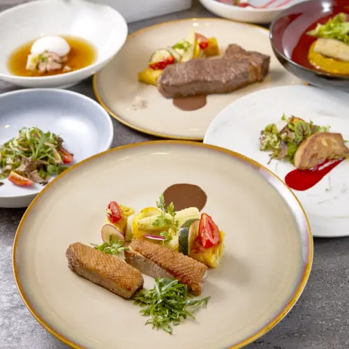 而主廚也打造奢華「一鴨八吃」饗宴,包括類似日式握壽司包入芥末和法國進口切片起司的「稻香鴨」、吃得到原味、黑芝麻雙口味的「片皮鴨」、將鴨肉和特製豆撈醬一起大火拌炒的「豆撈鴨架」等,也推出鹽酥鴨架、蔬鴨湯、鴨麗粥、麻辣鴨架跟鬼椒鴨架等多樣吃法,並同步推出方便外帶的烤鴨盒。「金牌長承烤鴨」預計在6/6、6/7開幕首兩日,推出12:06、18:06兩個時段的「整點片鴨秀」,準備24隻烤鴨在現場免費分送給烤鴨控品嚐。