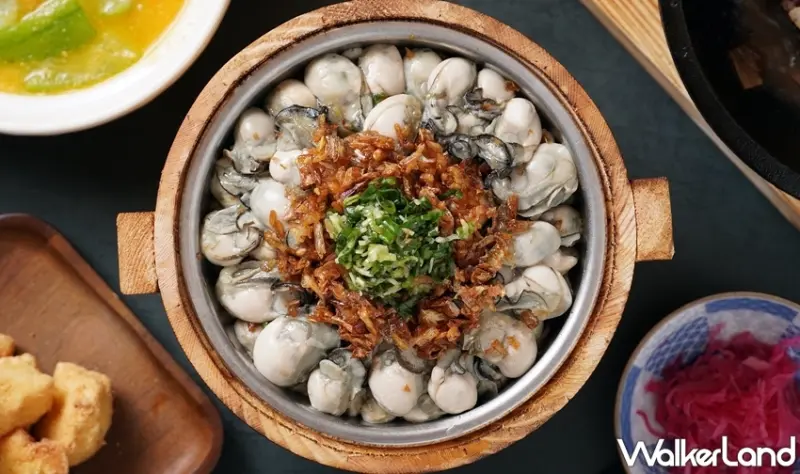 澎湃霸氣的「蚵仔山木桶飯」,選用來自嘉義東石的鮮蚵,粒粒飽滿肥美且份量十足,以特製木桶盛裝,搭配自製紅蔥酥並淋上蔥油,別具一番風味。燉煮至鮮嫩入味的白菜滷,喚起記憶中阿嬤的味道。