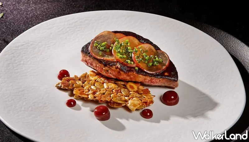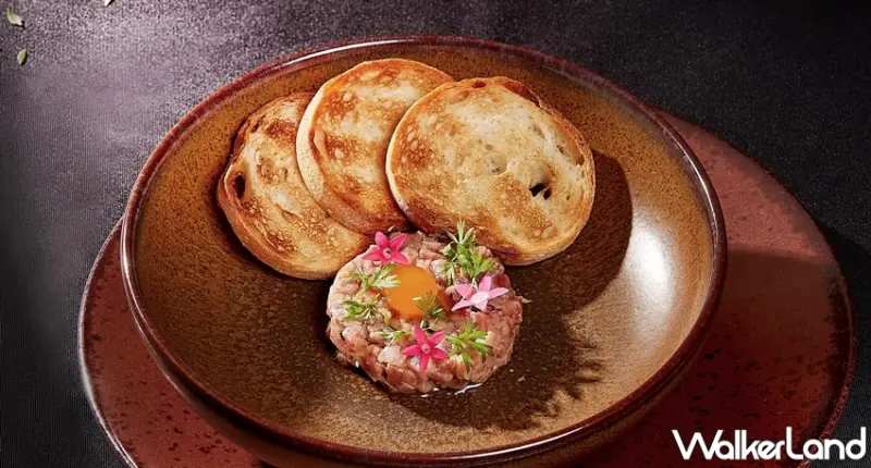 其中全新開胃菜「澳洲生牛肉韃靼」採用經典法式作法,晶瑩剔透的鵪鶉蛋黃有如黃寶石般鑲嵌於牛肉韃靼中,搭佐烤過的蜂蜜裸麥麵包,甜香帶嚼勁的囗感與辛鹹微酸的牛肉激盪出奔放滋味,為清爽開胃首選。