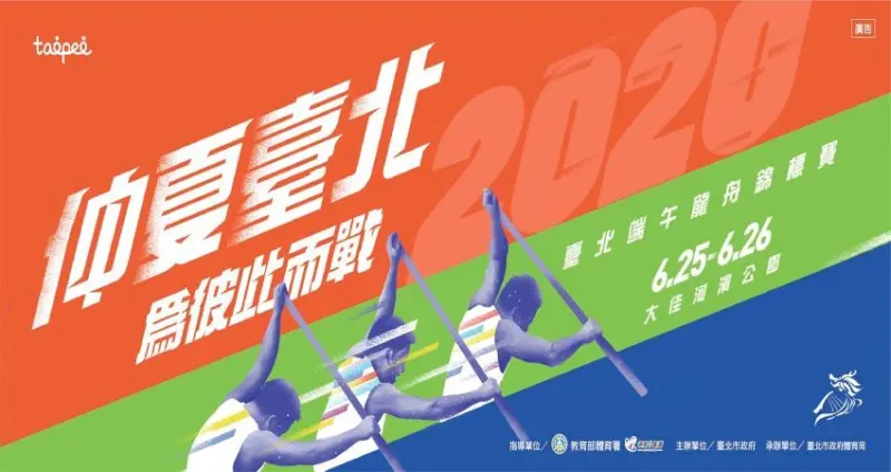 「2020臺北端午龍舟錦標賽」將於6月25日至26日在大佳河濱公園熱情登場!今年為了防疫考量雖取消陸上嘉年華與龍舟體驗營等活動,但臺北市政府體育局珍惜一年一度與選手相聚的機會,故縮小賽事規模如期辦理,讓國內各路好手齊聚一堂,為彼此而戰,爭奪最高榮譽。![]()
