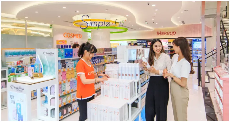 康是美Simple- Fit主題專區,主打順暢系、高纖維、代謝系3大功能,現場有專業藥師可諮詢,提供不同需求的消費者進行體內環保、運動前後補給健康食品的建議。此外,除了引進眾多知名彩妝品牌、內衣專櫃,讓消費者一站購足,更依商圈特性在一進門設置時尚搶眼的香水體驗區,展現法式優雅氣息。