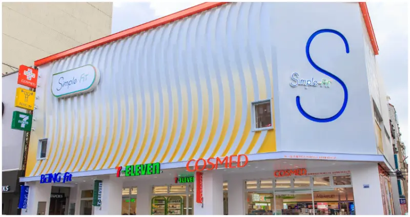 「Simple-Fit」複合概念店,採簡潔弧形設計風格,利用S元素貫穿建築外觀,並以大面積白底呼應Simple Fit輕盈健康形象,建立時尚律動感;同時結合地方特性,商品多元,一次購足,營造出地區型微百貨特色。