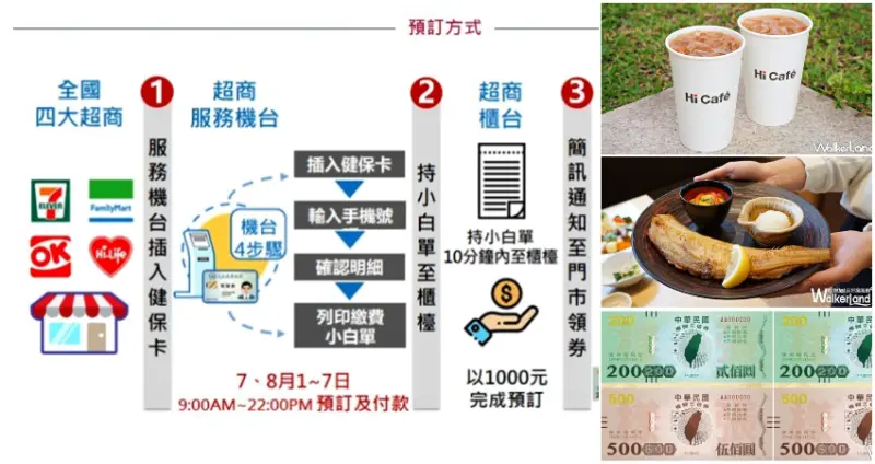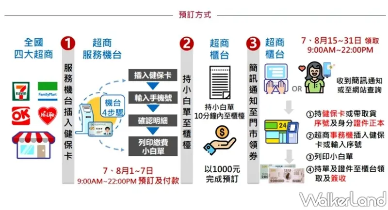 7/1開始將會開放四大超商正式預購振興三倍券,只要攜帶健保卡至超商機台,輸入手機號碼、確認取貨門市列印小白單,並櫃台預付即可完成預購流程,而7/15早上九點開始開放取件,同樣插入健保卡或輸入身分證字號以及領取號碼,確認資料後印出小白單,可至櫃台領取振興三倍券,省去排隊時間。![]()