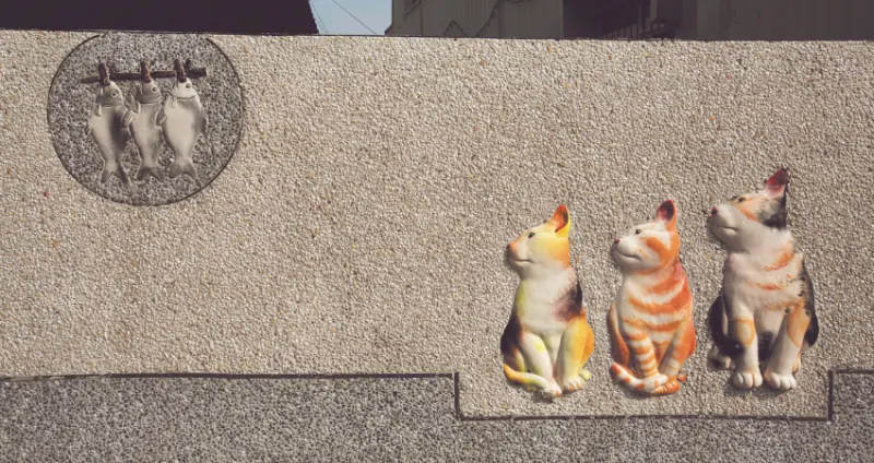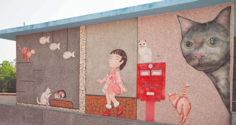 讓我們一起前往田中尋找貓咪吧!在鄉間宮廟的周邊巷弄矮牆上,出現一幅幅立體的彩繪陶藝貓咪,許多貓迷特地來到此地打卡拍照,表情生動逗趣的創作,讓人不禁莞爾一笑。﹁田中窯燒貓村﹂是由藝術家葉志誠老師指導社區居民以研習方式進行陶藝創作而成,蜿蜒小道上處處可見賣萌可愛的身影,讓整個小鎮溫暖了起來。