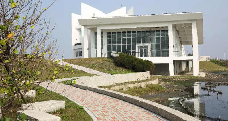 接著往彰化海濱前進,行經伸港鄉慶安水道旁,一棟曲線優美的白色建築就在眼前,許多網友稱它為﹁白色海豚屋﹂,是縣政府預計打造成「彰化自然生態教育中心」,雖然中心尚未落成啟用,但其獨特造型與純白迷人的設計,早已吸引不少網美與民眾前來打卡。