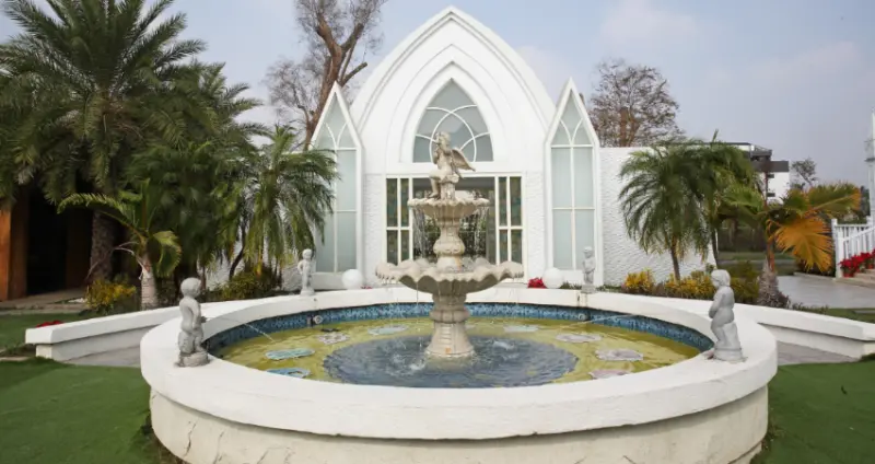 隔日揮別彰化美麗的海線風光,驅車來到隱藏在員林近郊的「琉璃仙境」,這座以婚紗攝影為主題的觀光休閒農場,園區設計了多種風格,有峇里島的南洋風、魔幻的3D彩繪風、歐式教堂風等,各式拍照建築物令人目不暇給。這裡不只是絕佳的打卡勝地,還有各種同遊體驗活動,像是食農教育、動物餵食、求婚活動等,農場內的4家主題餐廳提供不同的美食饗宴,讓人從早待到晚都捨不得離去呢!