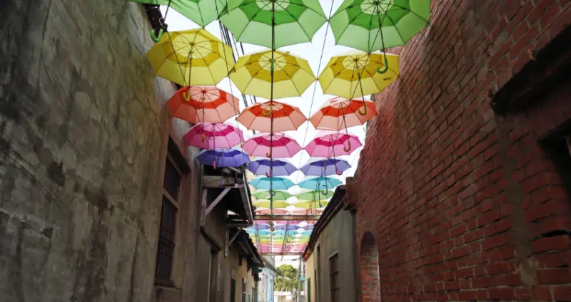 早年台灣製傘工業大多坐落在彰化和美一帶,「卡里善之樹」是第二代接收後所打造的風貌。以兒時充滿記憶的家為主題,把企業資源導入社群營造計畫,與在地青年聯手推動地方發展,用一支支繽紛的傘點亮村落,注入全新生命力。從北極宮前停車場就可看到一大段彩虹跑道,往彩虹屋的方向走,沿路有一大片彩繪牆,最有趣的是以雨傘為天棚搭起的彩虹廊道,以各種顏色傘布編織的隧道,象徵枯木回春的卡里善之樹,一一將村落妝點處處都是打卡點。還可拜訪貨櫃屋咖啡,或是到彩繪工作坊報名體驗課程喔!![]()
