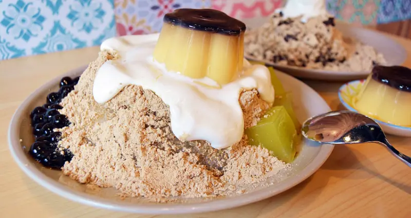 天后宮前轉個彎,就可以看到這間「麵麵茶茶」,當年還被取笑是亂搞一通,如今已開了第二家分店,成為鹿港新興的特色小點。從小吃糕餅長大的老闆施傑仁,對於甜點、點心類有著自己獨特的想法,10年前創業把麵茶做成點心,除了傳統的熱水沖泡麵茶之外,還將在上面添加鮮奶、珍珠、布丁等,形成既有趣又美味的新風味,創意麵茶已逐漸成為遊客來鹿港必吃必拍照打卡的選擇之一。