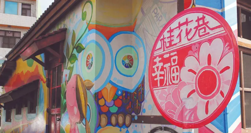 坐落在老街上距離天后宮不遠處的鹿港公會堂,對面曾是一群荒廢的日式宿舍群,經過這幾年的修整改造,如今成了藝術創作家的聚落「鹿港桂花巷藝術村」,這裡氣氛悠閒、環境開闊,加上彩繪創作,吸引民眾拍照留念。每棟老屋都有不同的創作者進駐,可以一一走訪,有不少工坊提供體驗課程,讓人度過閑適的手作慢活時光。