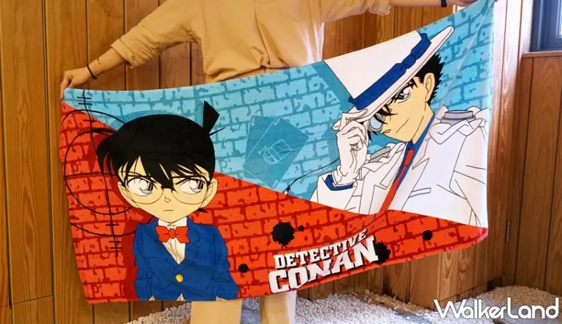 而洗澡、玩水必備的「名偵探柯南海灘大浴巾」以大面積的設計打造,觸感舒適的「名偵探柯南冷氣毯」則是將柯南常用的特殊道具融入其中,搭配柯南刺繡花紋以及招牌的紅色領結,吸引粉絲目光,「名偵探柯南束口袋」則是質感滿分。