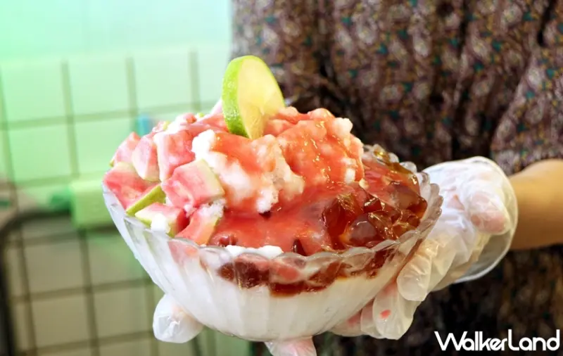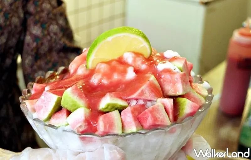 小時候冰菓室復古場景搭配都懷念口感的冰品,讓許多IG媒體搶拍報導,「紅心芭樂檸檬」運用香氣濃郁的綠檸檬製成檸檬冰底,搭配甘甜紅心芭樂與清透冬瓜凍,淋上秘製酸甜紅心芭樂淋醬,冰頂插上現切現切檸檬片綴飾煥發活力。