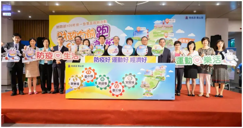 財政部特別感謝兆豐金控、臺灣企銀、合庫金控、華南金控、第一金控全力支持,以及屏東縣政府、臺中市政府、高雄市政府、臺北市政府、宜蘭縣政府對109年路跑活動的鼎力協助,於7月21日舉辦的全國統一發票盃路跑活動起跑記者會上,由財政部阮政務次長清華、兆豐金控、臺灣企銀、合庫金控、華南金控及第一金控等代表,一起進行「防疫好 運動好 經濟好」啟動儀式,藉由5場路跑活動並結合地方公私協力,讓全民跑出健康,也讓內需市場動起來,發揮乘數效果,振興地方經濟。