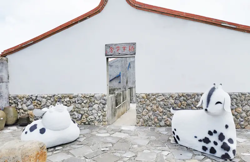二崁聚落是西嶼鄉熱門景點,咾咕石搭建的傳統建築是最大特色。位於村外的牧羊人咖啡館也是一棟完整的閩南老建築,它的屋頂上擺了一個大大的咖啡杯招牌,從遠處就清晰可見,闖蕩國外多年的兩姐妹,選擇回鄉開了這家特別的咖啡館,紅瓦白牆閩南建築配置木格窗稜、老家具、八掛銅門拔充滿古韻,館內提供研磨咖啡、冰沙及自製西點,羊圈也整修為拍照景點,是菊島炎熱夏天最佳休息站。