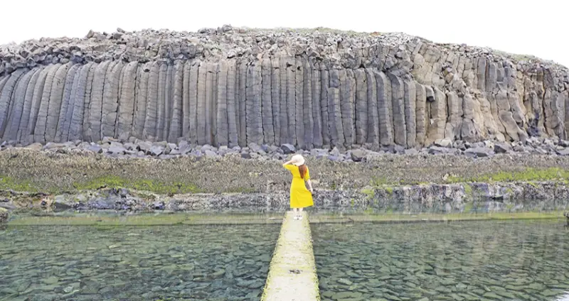 這個景點因爲許多網美打卡而暴紅,成了西嶼鄉必訪的IG熱點。壯觀的玄武岩壁前方有一座廢棄九孔池,退潮之後,橫豎交錯的堤道搭配池水形成特殊的海岸風光。走上堤道以海為背景,就是海岸風景大片,轉身與玄武岩合影,又成了澎湖風情最佳寫照。簡單說,就是怎麽拍都好看。因爲堤道退潮時才露出,想來拍照得注意潮汐時間,漲潮時,海水會淹沒整個九孔池,要注意自身安全。