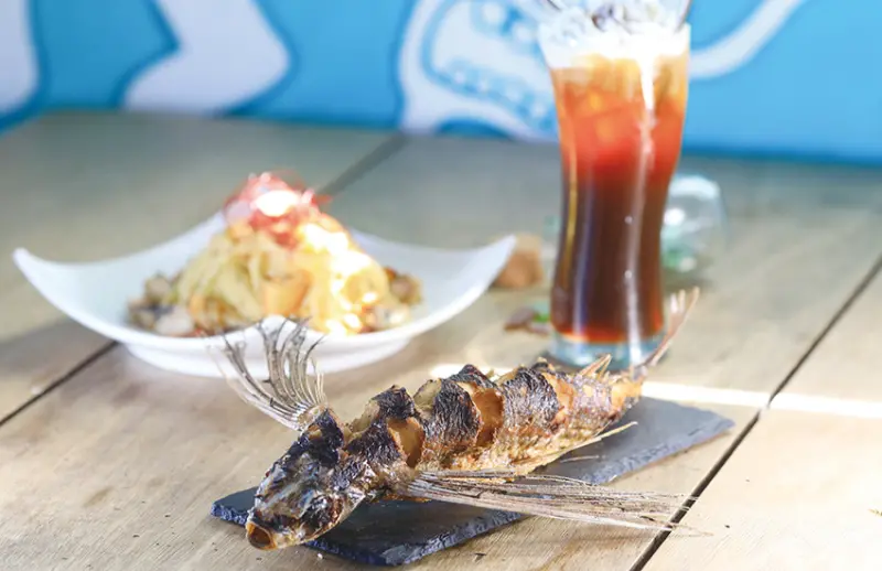 因爲交通不便,蘭嶼島上的餐飲多以在地生產的食材為主,漁人部落裡的漂流木餐廳爲了讓餐點品項更豐富,採用蘭嶼出產的飛魚、章魚等食材製作義大利麵、炒飯,也會研發特色飲料與調酒,餐點可口、物美價廉是島上的人氣餐廳之一。店內布置除了就地取材的漂流木之外,女主人的前同事也專程上島友情贊助,在牆面作畫增加趣味,還有超級環保的廢紙箱手繪菜單更讓人印象深刻。