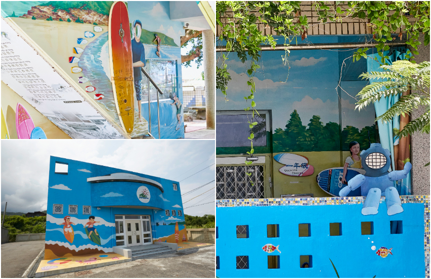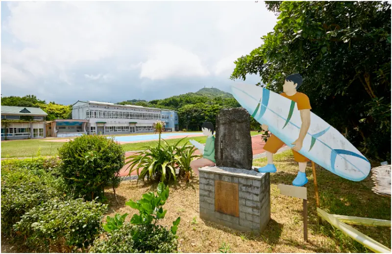 緊鄰中角灣國際衝浪基地旁的中角國小,可以說是一所獨具在地特色、衝浪運動的小學,在這裡的小朋友更是從小就開始學衝浪、玩浮潛、划獨木舟。因此走進校園你不難發現到,四處都是超可愛的衝浪壁畫,真的忍不住就會在此與壁畫留下合影打卡。