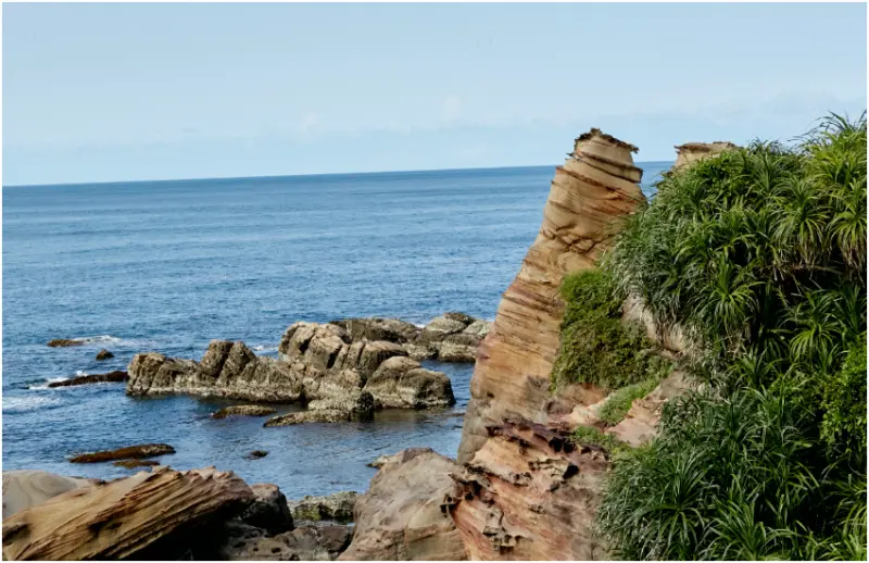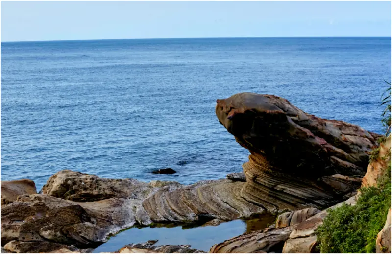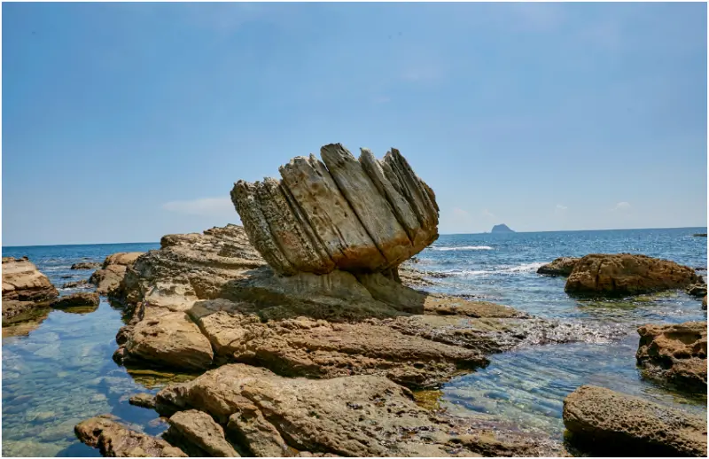 遠看是不是很像一記拳頭,打在波濤洶湧的萬里海岸邊呢?青春山海線最具特色的就是那海光石色的天然海岸線,這裡海天一色視野開闊,由於岸邊岩石長期被海浪沖刷侵蝕,因此沿途成就了許多奇岩怪石,而萬里拳頭石正是這麼多奇岩怪石中,令人印象最為深刻之一,因此非常值得前來觀賞。