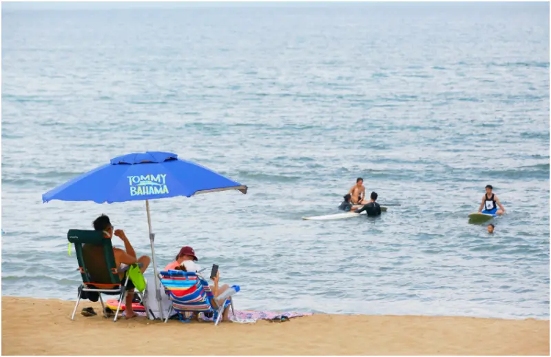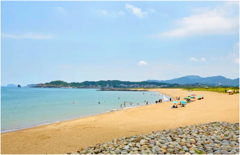 當然除了各式水上極限運動可體驗外,中角灣獨有的金黃色沙灘區域,也是大家來到此處必遊的亮點。由於沙灘質地較細,再加上有較大範圍的淺灘區,也非常適合孩童玩樂,同時也有安排救生員及護理站進駐,讓大家可以玩得安心。