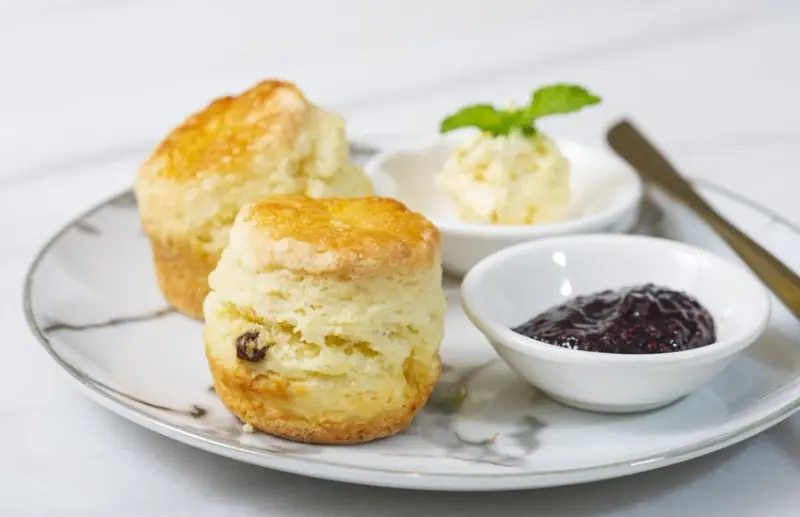 但品嚐英式司康怎麼吃才最對味、道地呢?其實關於司康醬的抹法並無特定,但據說英國女王在品嚐司康午茶時,都會先將司康切開後首先會先將果醬塗上後再塗抹奶油醬,並依據個人對於抹醬的需求份量適當塗抹。![]()