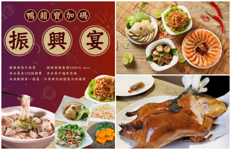 凡持振興劵消費一桌滿三千,當日即贈送櫻桃烤鴨二吃乙隻(片皮&三杯),原價1880元+10%,每桌贈送乙隻為限,再加碼送價值近三千元的「食樂加碼券」一本,內含10道私房料理免費餐券、Sing go KTV現折1000元歡唱抵用劵。