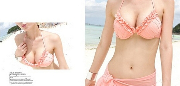 防曬小撇步:荷葉邊設計讓胸部看起來更加集中,但胸部與比基尼的邊緣可千萬不要忽略防曬!