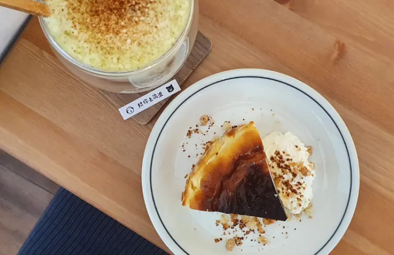 如果你喜歡純粹原味的甜點,那來到這裡一定要品嚐巴斯克起士,這一份來自西班牙巴斯克的家庭小點心,沒有一眼動人的外貌,卻擁有著簡單純粹中帶有濃郁口感的重乳酪風味,配上一杯森半抹茶牛奶更是合拍!![]()