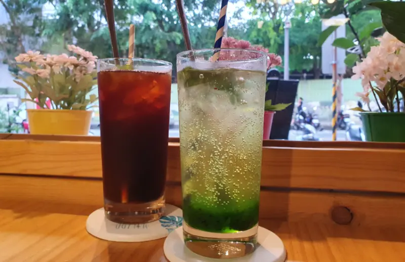 圖說:黑咖啡80元/奇異果泡泡飲80元![]()