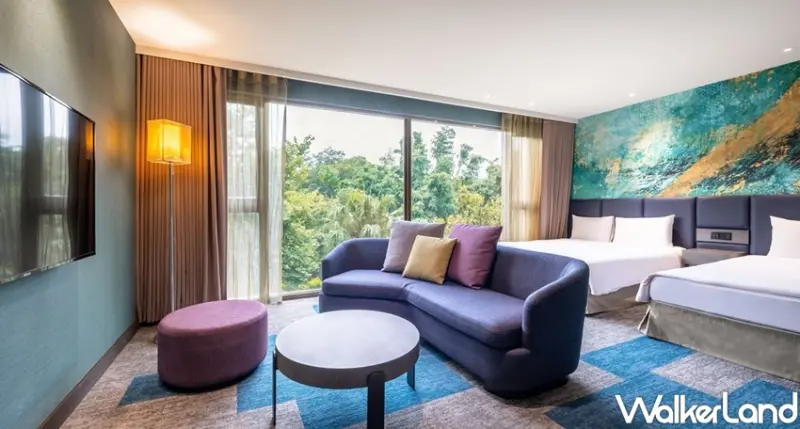 「現代藝廊」為發想打造全新「香榭家庭房」,由漸層光影廊道引領旅客踏入,和煦陽光灑入全景落地式玻璃窗,讓光線穿透延續空間感,層次交織,美感天成。牆面則以低彩度的中性色調作設計,完美營造平穩舒適的休日氛圍。![]()