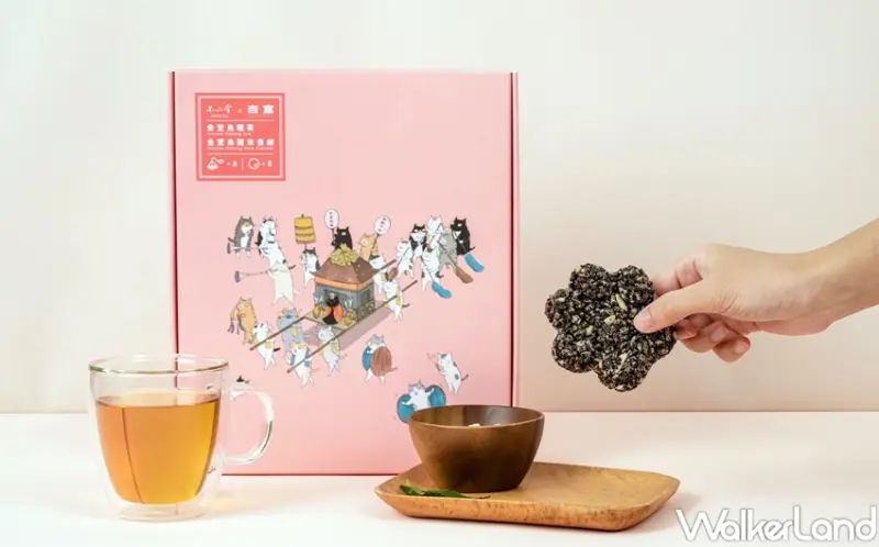 貓奴一定會搶著買「貓祖遶境」,由黑米和金萱烏龍茶特製的貓掌造型米香餅,添加南瓜子與杏仁片,口感香脆多層次,外包裝由台灣插畫家貓小姐,繪製各種貓咪角色,生動可愛模樣,療癒貓奴心靈。禮盒附上台灣金萱烏龍茶包,搭配貓掌米香餅,充滿台式鄉土風味。
