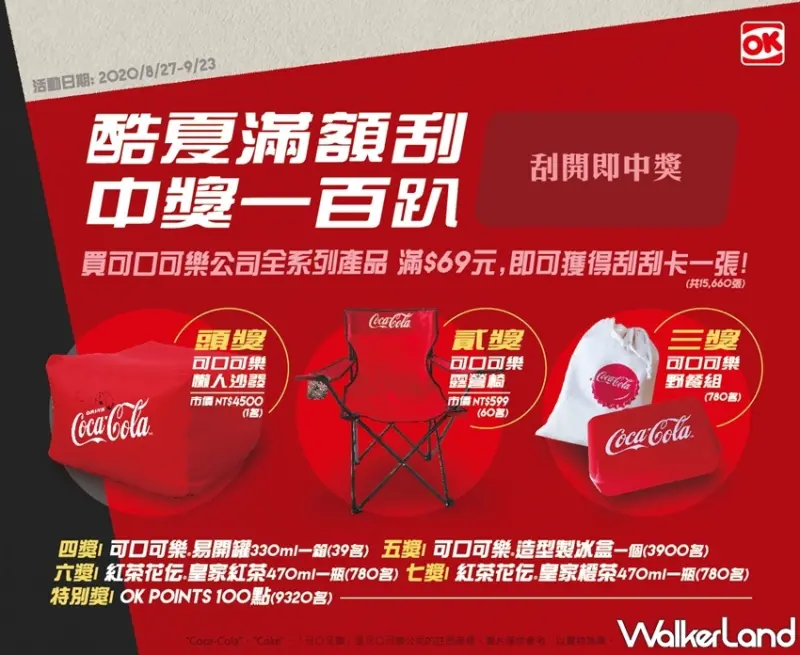 二獎「可口可樂」露營椅乙個 (參考市價NT$599 元),共60 名