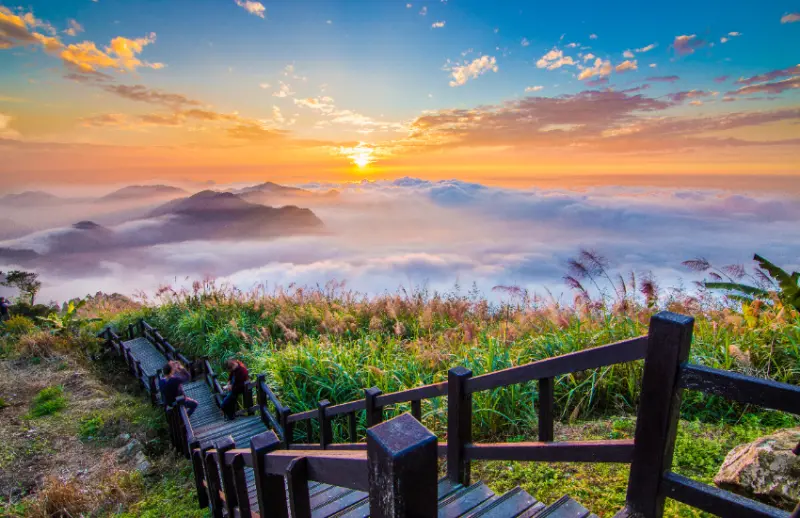 太平雲梯:台灣海拔最高的景觀吊橋,可賞夕陽、晚霞、雲海,俯瞰梅山36彎夜景更是一絕,視野極佳,可遠眺嘉南平原直至台灣海峽。