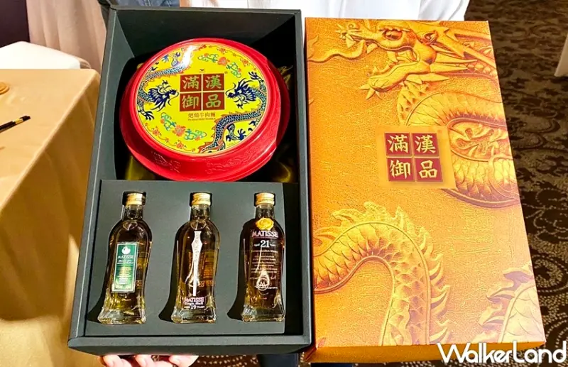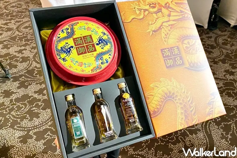 今年中秋滿漢御品將給老饕們不同以往的新感受,特別跨界結合精品威士忌馬諦氏,搭配三款分別以果香、香草蜂蜜香與太妃糖香等主風味的威士忌,創造與滿漢御品既碰撞又融合的頂級風味。
