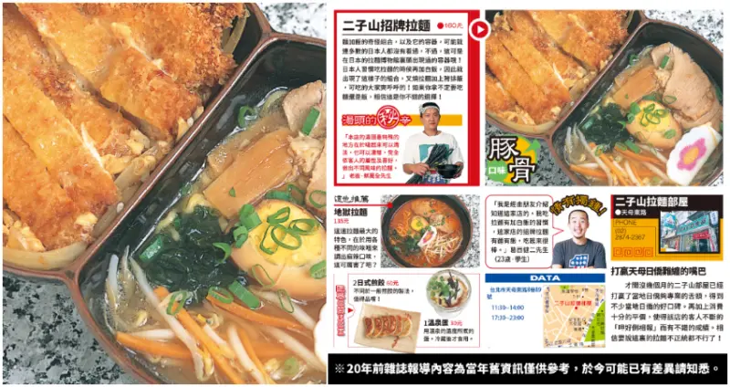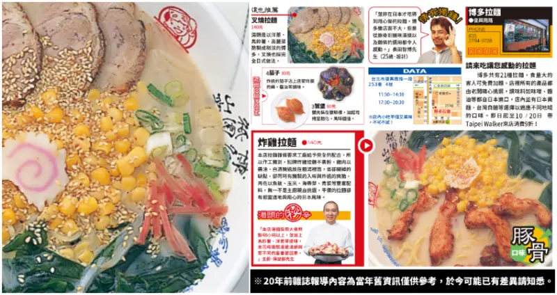 很多人都會說,我從小到大都是看著Taipei Walker介紹,帶著家人去吃吃、喝喝,現在你還是可以跟著 Walker 食光機,回味20年前最流行、最熱門的必吃美食。這一期我們一同回味Taipei Walker第二期,認識20年前必吃的五間拉麵店、三間滷味店、一間下午茶,現在一起認識超過20年的老味道。![]()