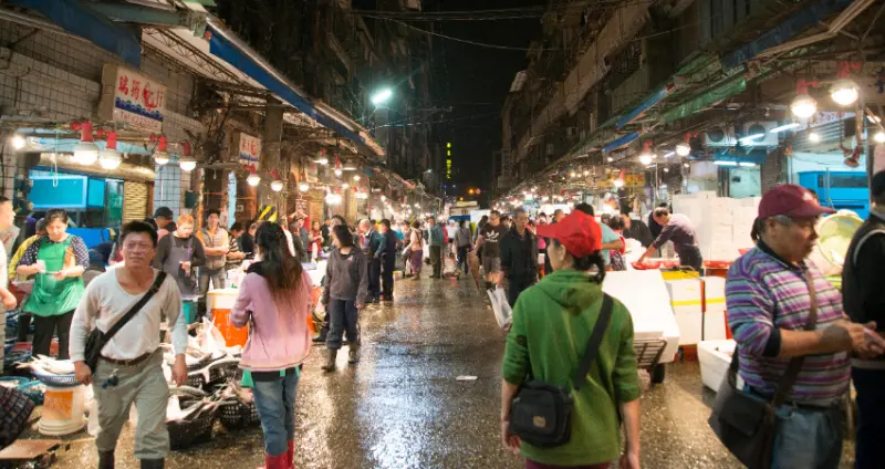 在香火鼎盛的奠濟宮前,是聞名國際的基隆廟口夜市,範圍自廟口延伸到仁三路、愛四路一帶,前來品嚐各種傳統美食的人潮在傍晚時分便開始湧現。這個位居基隆精華地帶的夜市,自日治時代末期開始逐漸擴大成固定市集,後經市政府規劃,區分為早班及晚班,甚至還有24小時營業的攤位。每當提到基隆美食,大家不禁聯想到鼎邊銼、泡泡冰、天婦羅、一口香腸等,幾乎已成了夜市的代詞,來到基隆可別錯過!