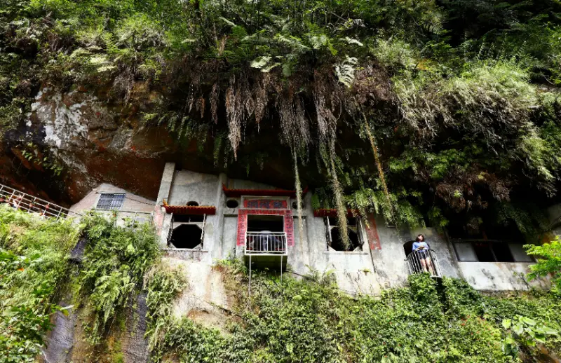 位在銀河洞越嶺步道中,是因楣子寮溪流經此處時遇斷壁而形成的瀑布。瀑布旁的山洞內,為後人興建的觀音小廟,由於小廟緊貼著陡峭的山壁,讓廟前陽台宛如懸空在山壁上,搭配周遭的綠樹與飛瀑,吸引許多網美前來打卡,也讓原本少有人知的銀河洞,瞬間成為人氣景點。來到此地,可從廟前陽台遠晀山谷綠意,或從下方平台仰望小廟的古樸秀麗,一旁還能看到飛瀑拍打山壁激起的水花,著實是仙氣十足的夢幻場景。