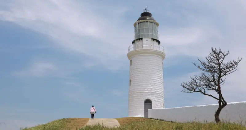 位於馬祖東莒島又稱東犬燈塔,最早創建於1872年,現已列為國家古蹟。燈塔高度約19.5公尺,是東莒地標,也是白天賞古蹟拍風景、夜間賞月觀星的最佳景點;從高處俯瞰,福正沙灘搭配下方的建築群景色極美,具體展現馬祖戰地風光。而長達30公尺的白色防風矮,早年是為了防止強風吹熄工作人員手中的煤油燈搭建,現在則成為最熱門的拍照位置;而辦公室內保留了當年器材,讓遊客能更了解燈塔的歷史。