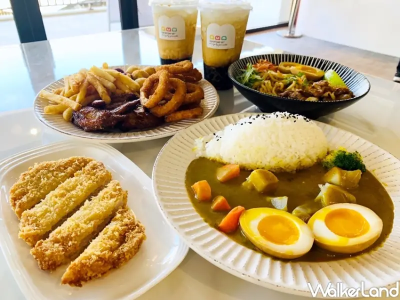 餐點部分,除了原有的韓式厚煎吐司、舒芙蕾、千層蛋糕,還推出「麗寶限定」的「和風重咖哩飯」,特價只要159元,「日式豬排」鮮嫩多汁的酥炸豬排,大口咬下美味立刻於口中化開,肉片有厚度但柔軟;「日式唐揚雞」雞肉炸得外酥內軟嫩,一口咬下酥脆爆漿,搭配蜂蜜芥末醬,混著份量十足的咖哩醬,澆在飯上攪拌一起吃,入口滑順、香甜不膩口。