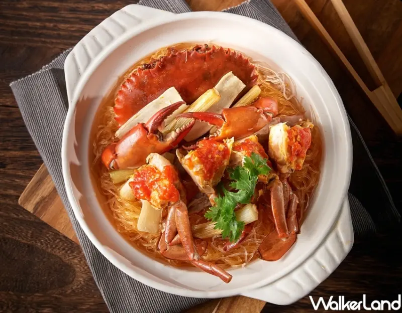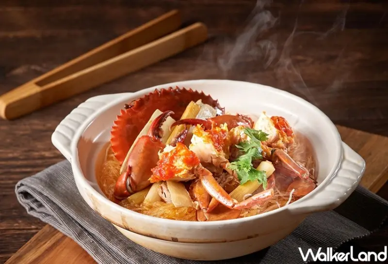 而珍珠坊主廚蔡清南則是推出「蔥薑紅蟳粉絲煲」,搭配溫、熱性的蔥薑蒜等辛香料,蔥薑也經過特別挑選、處理,蔥只選蔥白,吃時比較軟香,而薑選用中薑,生蒜末,先把中薑和蒜粒及蔥白用小火逼香,因此在煲內燜燒時,不必添加調味,最後粉絲吸足鮮美湯汁更兼具養氣功效,絕對豐富你的味覺享受。