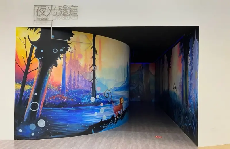 ▲用夜光顏料塗繪的隧道,走進去後有獨特的神秘氛圍