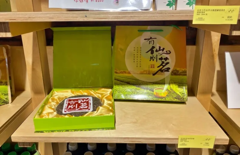 ▲少見的仙草茶餅。楊梅仙草與關西仙草屬於不同品種,香氣濃郁,味道宜人