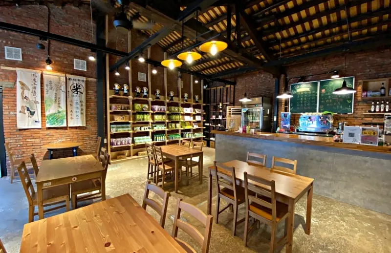 ▲伯公岡25糧倉將老舊糧倉重整為舒服簡約的展示中心,販售楊梅仙草的多種商品