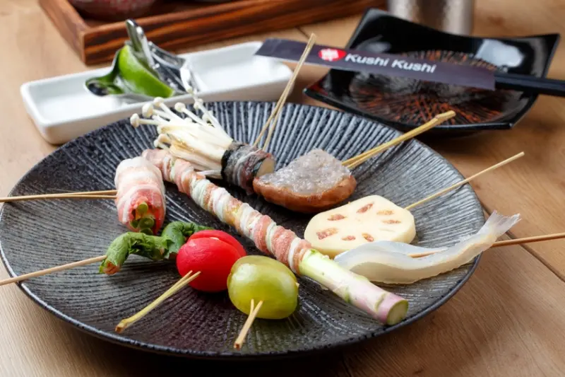 保留串場最原始的口感,將當季海鮮、蔬菜、肉類串成適口尺寸炸至金黃色,佐上各式自製沾醬享用,除著名的元祖手羽先唐揚外,美味的雞肉料理是用餐佐酒的好選擇。![]()