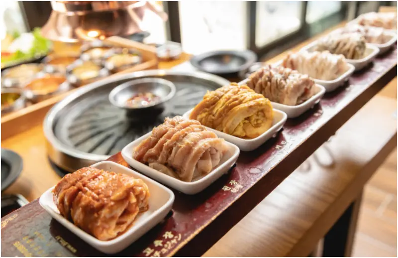 嚴選國產活菌豬、美國PRIME牛肉及澳州9+頂級和牛等,主廚依肉品口感與特性,運用韓式醬汁醃製鮮甜頂級肉品,讓肉品細膩豐潤的原味與醬汁交織出美妙滋味。![]()