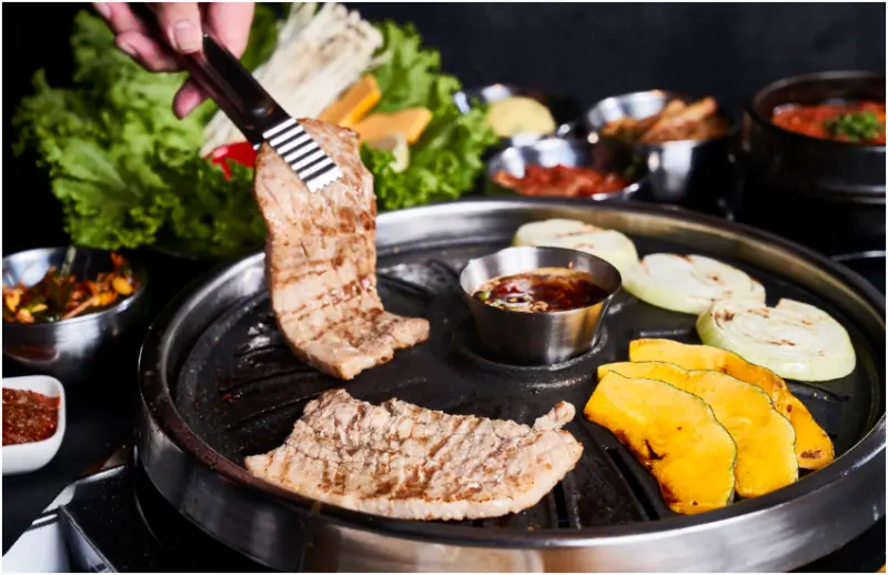 正宗韓國八色烤肉,八種味覺新體驗,以松葉、大醬、紅酒、人蔘、蒜味、辣椒醬、花草、咖喱,嚴選最高等級豬五花醃製,由淺入深的吃法,讓烤肉多了不同的層次感。![]()