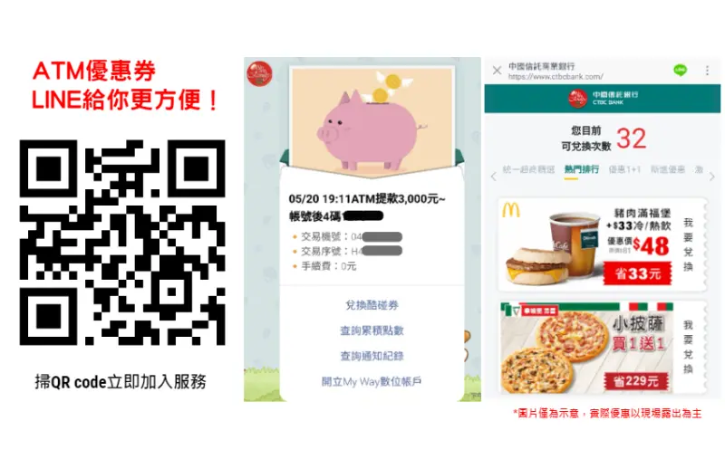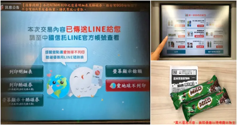 除了兌換實體ATM優惠券,也可點選「愛地球不列印」就能以線上方式透過LINE挑選喜歡的優惠券,快先掃QRcode立即加入服務!